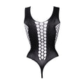 Teddy with a combination opaque and net. It has a deep-V neckline. This teddy has some stretch and can be worn from size UK Size 6 to 14 Thong not included. Hand wash or hand wash programme, cold water, dry flat, do not tumble dry, do not iron.