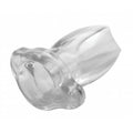 The perfect size for anal beginners or those who prefer a smaller penetration. The Peephole allows you to discover a whole new part of your partner as you peer into the depths of their ass! This anal plug is clear and hollow for maximum visibility. The opening is also great for liquid play, whether you are delivering an enema or getting creative in other ways. A contoured base makes this plug comfortable for extended wear. This material is compatible with both silicone and water-based lubricants.