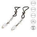 Push sensation to the next level and enjoy teasing nipple play with the Nipple Play Non-Piercing Nipple Jewelry Crystal Teardrops. Explore elevated sensation with the 2 fully adjustable nipple jewel adornments, pliable cinch and sparkling crystals. One glance at the sparkling crystal jewels will inspire frisky fantasies and make your lovers appetite water. Inspire feelings of sensuality, confidence and arousal when you tighten the slip cinch. The silicone cinch design allows playful beginners and fetishists alike to enjoy dazzling body jewellery. Tighten the adjustable cinch tension for intensified teasing and elevated pleasure. With the teasing cinch stimulation and increased blood circulation, you can look forward to amplifying nipple sensitivity and intensifying overall arousal. These easy-to-use nipple teasers are great for him or her. The two adjustable silicone cinch loops are made with adjustable nickel-free iron chains and Silica jewels.