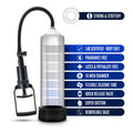 Performance VX3 is a gentlemens enhancement system that consists of a vacuum chamber, trigger pump, a soft removable airtight pump seal and a soft stretchy cock ring. The precision-engineered vacuum chamber is clear for viewing progress measuring 2.5 inches wide, 10 inches in total length and accommodating 9.25 inches in penis length. Adjust the intensity with the two-finger pump control handle and disengage with the quick-release valve. Bonus elastomer penis ring helps maintain erection and elongate each VX3 experience. Extra large airtight cylinder assures maximum performance Precision design and construction ensure a maximum vacuum environment within a vacuum chamber Advanced pump trigger with pressure release valve is designed for easy, effective pumping and instant pressure release Also includes 1 soft elastomer cylinder seal and 1 Stay Hard cock ring Length 9.5 inch 25,4 cm Insertable length 9 inch 22.8 cm Width 2.25 inch 5.7 cm
