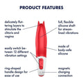 The Power Flower by Satisfyer will inspire you with its playful fins, reminiscent of romantic petals, that stimulate the clitoris with fluttering vibrations. With a choice of 12 vibration programmes, the vibrator is especially powerful, stimulating you with gentle to intense vibrations with a choice between 6 intensities and 6 vibration patterns.