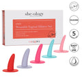May restore and revive vaginal strength and comfort. 5-piece Silicone dilator set for gradual dilation. Unique, wearable design for comfort and easy mobility. Ergonomically curved for ease of use. Dilators may accommodate a stimulator if desired, not included. Dilator guide from Dr Sherry included. May be used in or out of the water. Dimensions. Dilator 1. 3.33 x 1.18 in. Dilator 2. 3.12 x .97 in. Dilator 3. 3.02 x .85 in. Dilator 4. 2.96 x .74 in. Dilator 5. 2.67 x .53 in.